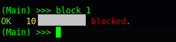 to block a host from using the internet we simply specify the block command followed by the host id of the host that we want to block like this